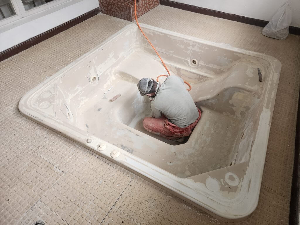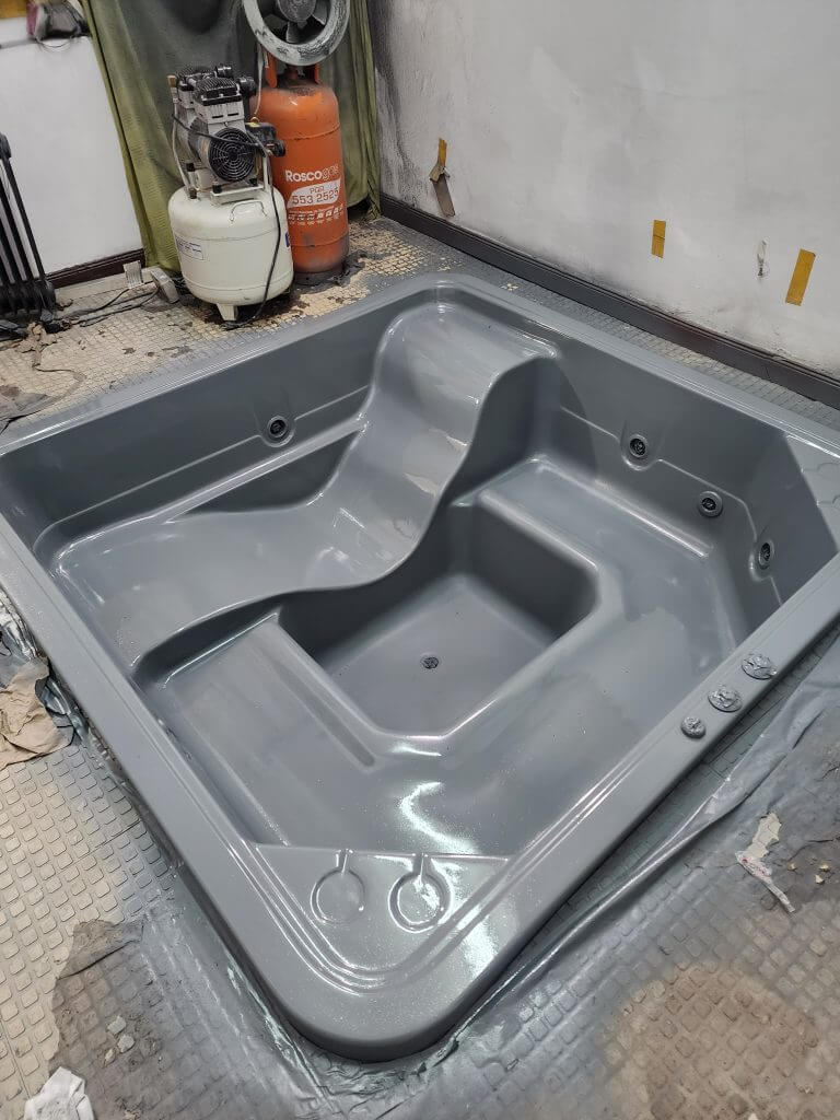 4. Aplicación de la Nueva Capa de Acabado: Se utilizó una pintura de alta resistencia, especialmente formulada para superficies de jacuzzis, garantizando un acabado suave y duradero.